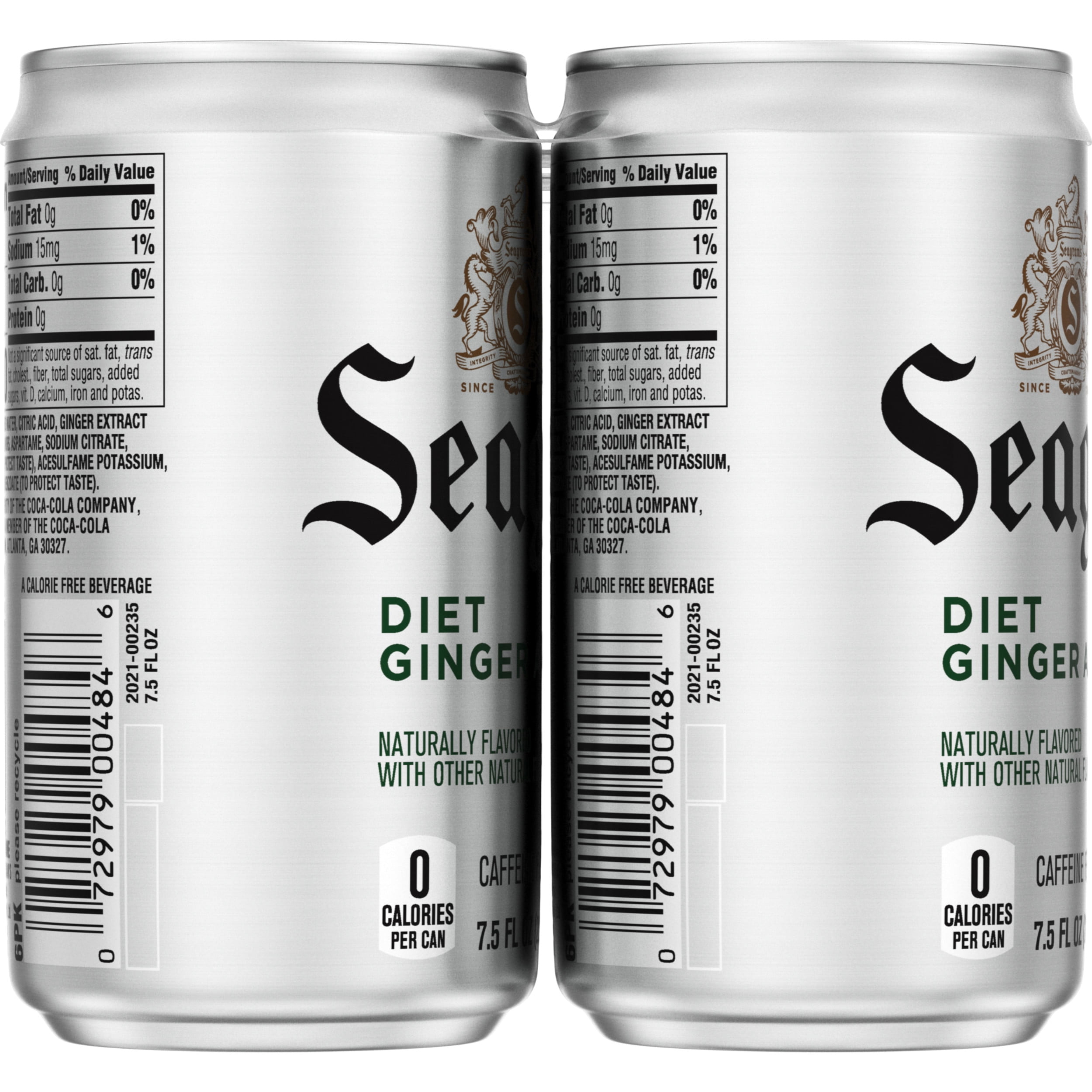 Seagram's Nutrition Facts. Calories, carbs, fat, sodium & more ... Seagram's. Seagram's Ginger Ale. 12 fl oz. Nutrition Facts. 130 calories. Log food. Seagram's Diet Ginger Ale. 12 fl oz. Nutrition Facts. Seagram's Escapes Spiked Seagram's Escapes Spiked. Spiked Jamaican Me Happy. Our classic blend of watermelon, guava, lemon and strawberry flavors, charged up! ... Have you tried these yet? 🤩 Our NEW Spiked 8% ABV flavors are ready for summer! Grab Passionfruit Lime & Salt and Mango Ginger & Lime in the cold section of your c-store.