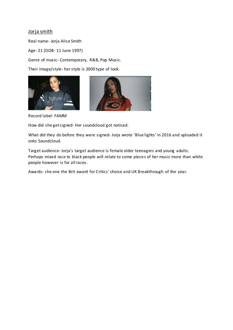 Jorja Smith - FactMandu Jorja Smith is signed to label: FAMM. Jorja started singing career at the age of 15 after uploading videos of herself singing cover songs on YouTube. She released her debut single "Blue Lights" in January 2016 and the second single "Where Did I Go?" in July 2016. She released her debut EP, Project 11 in November 2016 which included 4 tracks.
