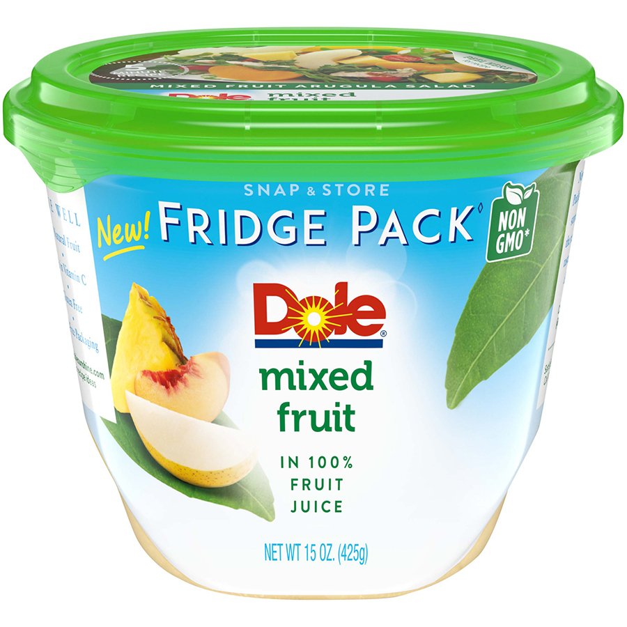 Dole Mixed Fruit in 100% Fr - Online Groceries | Albertsons Dole Mixed Fruit in 100% Fruit Juice Cups - 4-4 Oz. Mixed fruit in 100% fruit juice. Per Serving: 60 calories; 0 g sat fat (0% DV); 0 mg sodium (0% DV); 12 g total sugars; 27 mg vitamin C (30% DV). Excellent source of Vitamin C. Non-GMO (No genetically modified (or engineered) ingredients). Pineapple, peaches & pears are non-GM fruits.