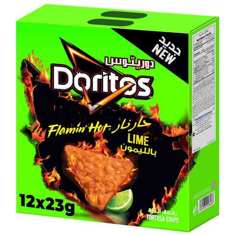 Buy Doritos Flamin Hot Lime Flavored Tortilla Chips 23g Pack of 12 Online - Shop Food Cupboard on Carrefour UAE