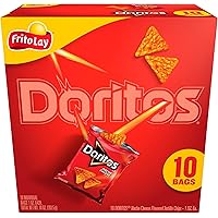 Doritos : Chips - Target Pringles Snack Stacks Variety Pack Potato Crisps Chips - 12.9oz/18ct. $5.99 . Doritos Nacho Cheese Flavored Tortilla Chips - 14.5oz. $4.69 . Doritos Cool Ranch Chips - 9.25oz. $11.99 . Frito-Lay Variety Pack Flavor Mix - 18ct. $3.29 . Organic White Corn Tortilla Chips - 12oz - Good & Gather™ ... Dr Pepper Soda, 12 fl oz cans, 12 pack - Walmart.com Pepsi Cola Zero Sugar Soda Pop, 12 oz, 12 Pack Cans. 91 4.5 out of 5 Stars. 91 reviews. Pickup Delivery 3+ day shipping. Similar items you might like. Based on what customers bought. More items to consider. Based on what customers bought. About this item. Nutrition information. Nutrition facts. Doritos & Cheetos Mix Chips Variety Pack - Kroger Shop for Doritos & Cheetos Mix Chips Variety Pack (18 ct / 17.625 oz) at Kroger. ... $ 12. 10. Sign In to Add. ... Blue 1, Yellow 5), Spice, Citric Acid, Disodium Inosinate, And Disodium Guanylate. Contains Milk Ingredients. Doritos Nacho Cheese Flavored Tortilla Chips Ingredients: Corn, Vegetable Oil (Sunflower, Canola, And/Or Corn Oil ... DORITOS® Nacho Cheese Flavored Tortilla Chips Doritos (/dəˈriːtoʊz/) is an American brand of flavored tortilla chips produced since 1964 by Frito-Lay, a wholly owned subsidiary of PepsiCo. The original Doritos were not flavored. The first flavor was Toasted Corn, released in 1966, followed by Taco in 1967 and Nacho Cheese in 1972. I consume this product: