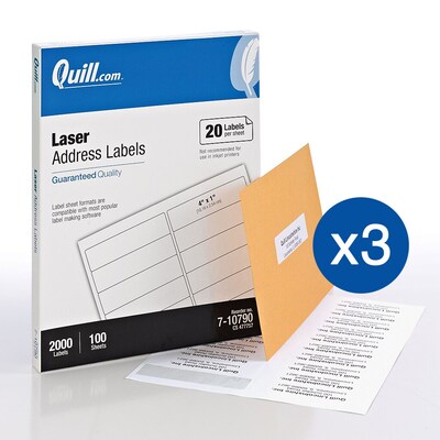 Quill Brand® Laser Address Labels, 1" x 4", White, 6,000 Labels (Compare to Avery 5161, 5261 & 5961)