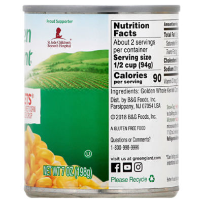 Green giant canned corn nutrition label
