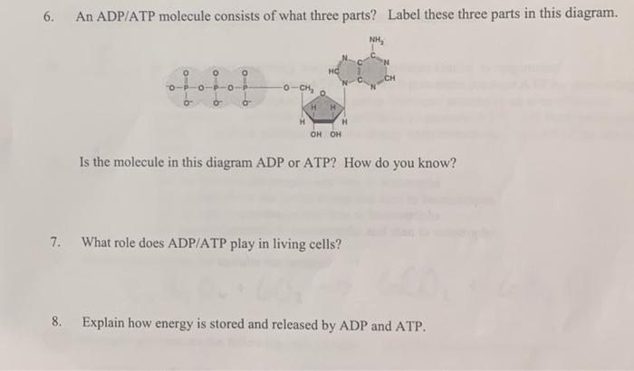 Solved 6. An ADP/ATP molecule consists of what three parts ...