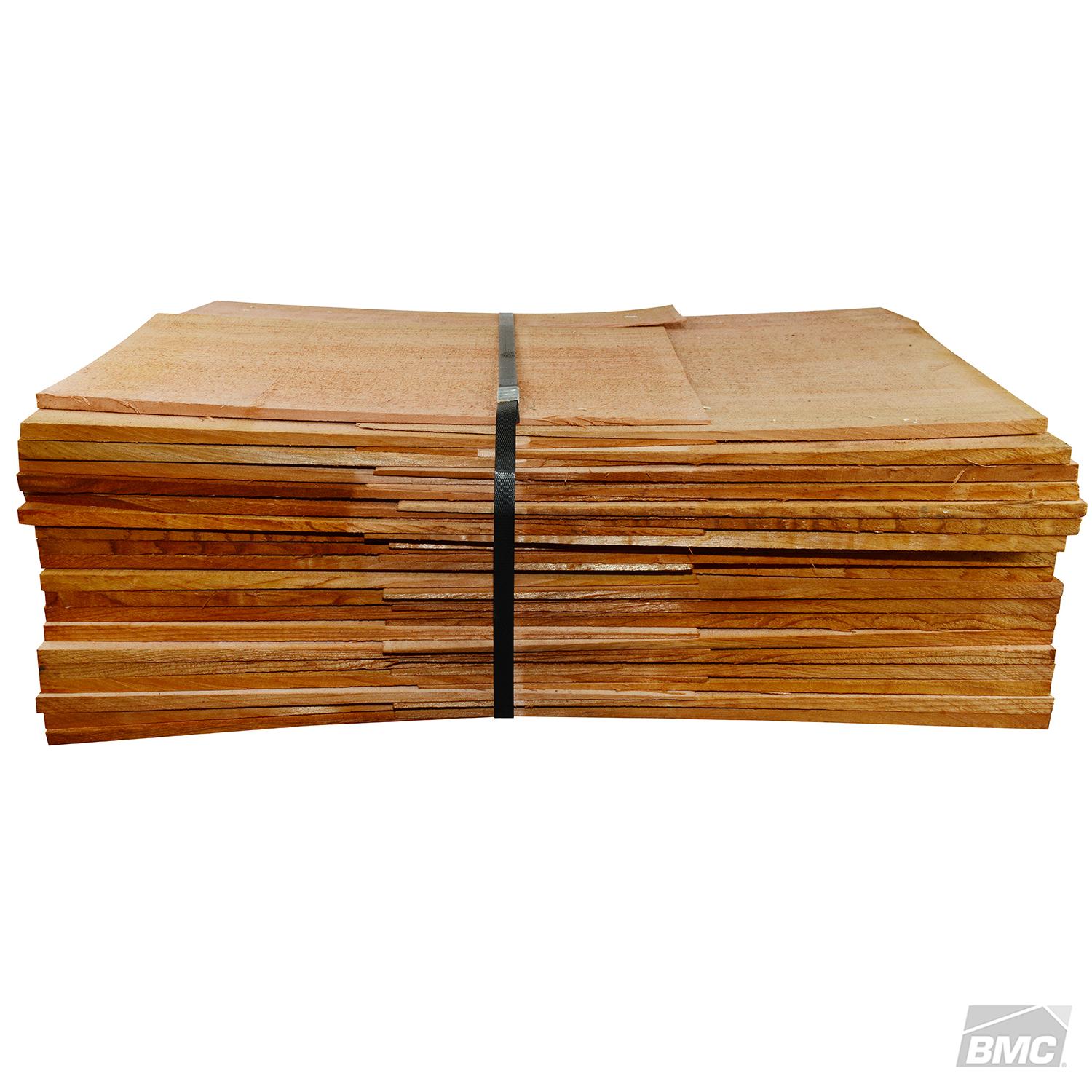 Cedar Shingles » CEDARCORP We stock Cedar (Western Red) shingles No.1 Blue Label H3 treated and kiln dried, these are ideal for walls and roofs that don't collect drinking water. The shingles are usually bandsawn 450mm in length with varied widths and taper to a wafer thin end. Shingles are sold by the bundle and 1 bundle covers 2.3 sq mtr approx. Select from the following: