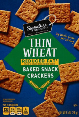 Wheat Thins Reduced Fat Whole Grain Wheat Crackers, 8 oz One 8 oz box of Wheat Thins Reduced Fat Whole Grain Wheat Crackers. 100% whole grain crackers with a deliciously salty, but slightly sweet taste and 25% less fat than Original Wheat Thins. Each serving has 21 g of whole grains and no cholesterol, high fructose corn syrup, artificial flavors or colors. Thin baked crackers are versatile whole ...