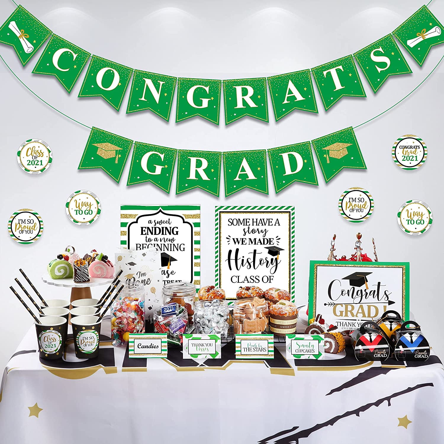 Graduation Candy Buffet Labels, Black Gold Grad Party Buffet Table Sign Set, Graduation Party Dessert Food Label Decorations