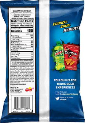 Doritos Tortilla Chips, Cool Ranch, Party Size Bag 14.5oz (Pack of 1) Nutrition facts Ingredients About this item Includes 1 (14.5oz) Party Size bag of Doritos Tortilla Chips, Cool Ranch Enjoy these crunchy tortilla chips straight from the bag or after scooping up fresh salsa or dip A bold experience in snacking and beyond.Contains milk ingredients Doritos believes there's boldness in everyone