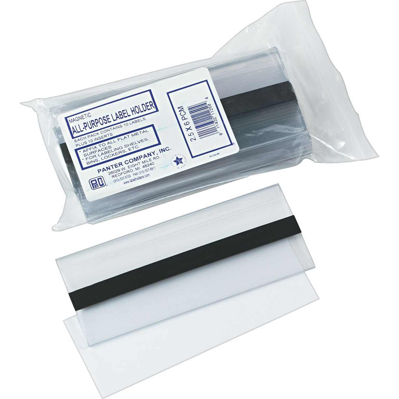Panter Company MAG-LH-BK Magnetic Label Holders, 4-1/4 x 2-1/2 ... Heavy-duty vinyl sleeves with magnetic backing for easily attaching to any metal surface. Ideal for labeling file cabinets, drawers, bins, lockers and more. Magnetic Label Holders | 3in.x5in. (Set of 25) - Minomag ALL PARTS INCLUDED | Kit includes 25 magnetic label holders, 25 white label cards, and 25 clear PVC covers. · EASY TO USE | Each card holder magnet is 5” wide by ...