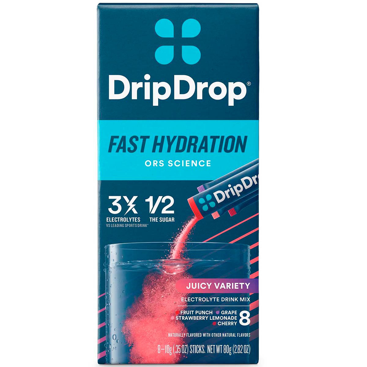 DripDrop Hydration - Electrolyte Powder Packets - Grape, Fruit Punch, Strawberry Lemonade, Cherry - 32 Count